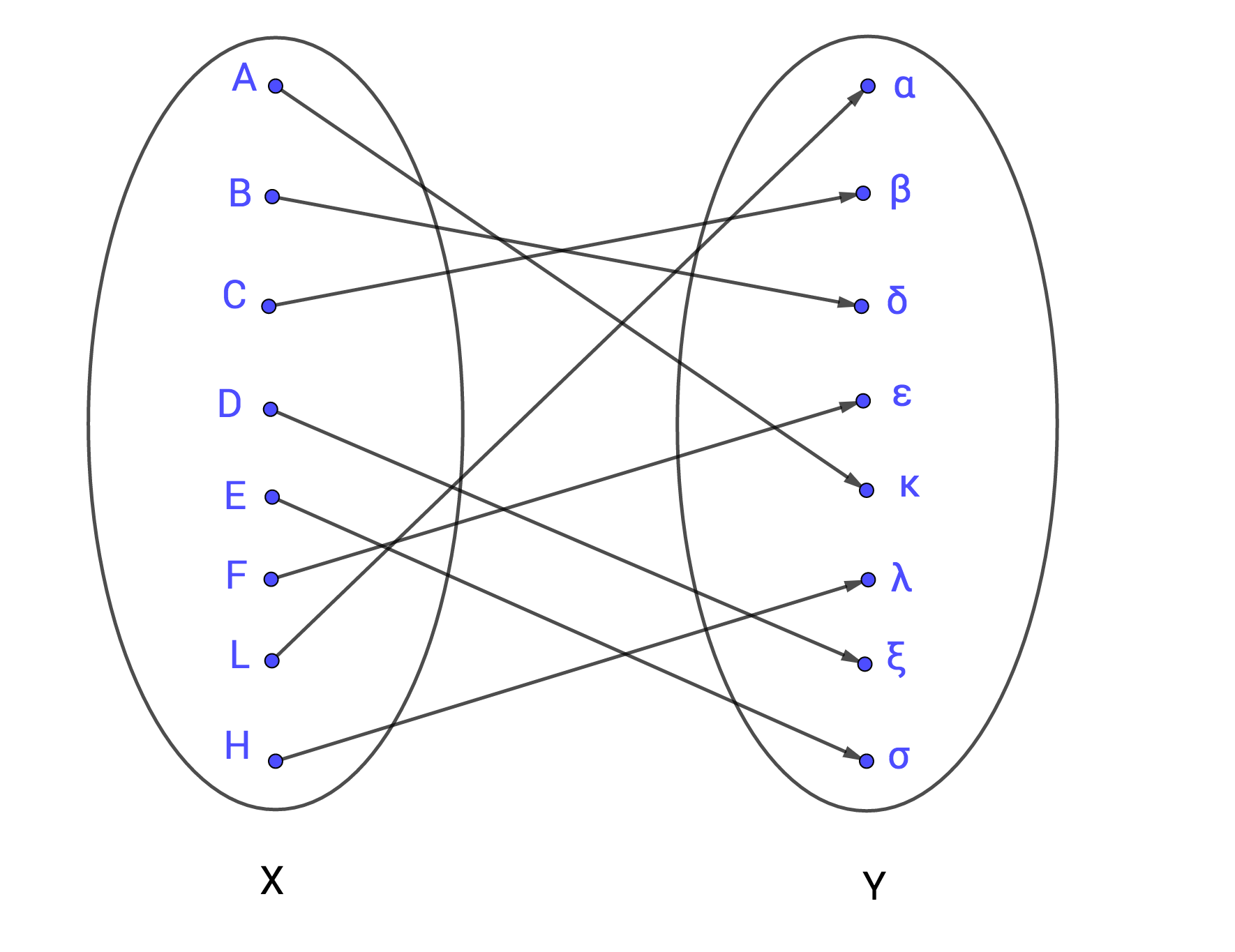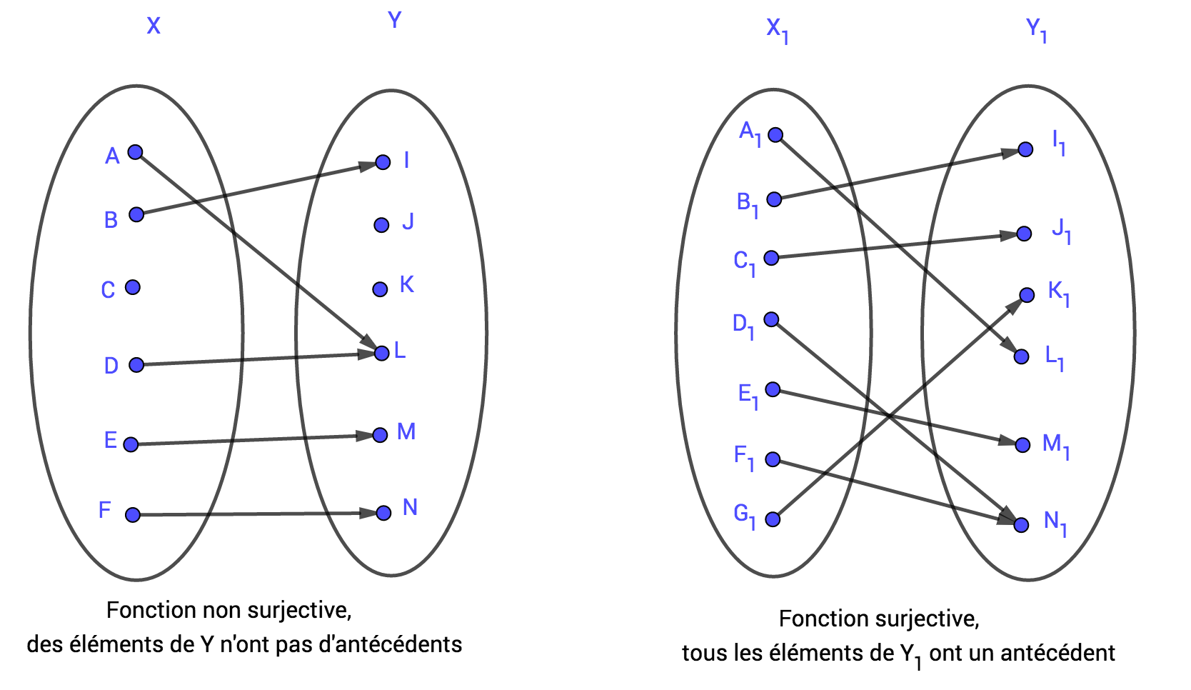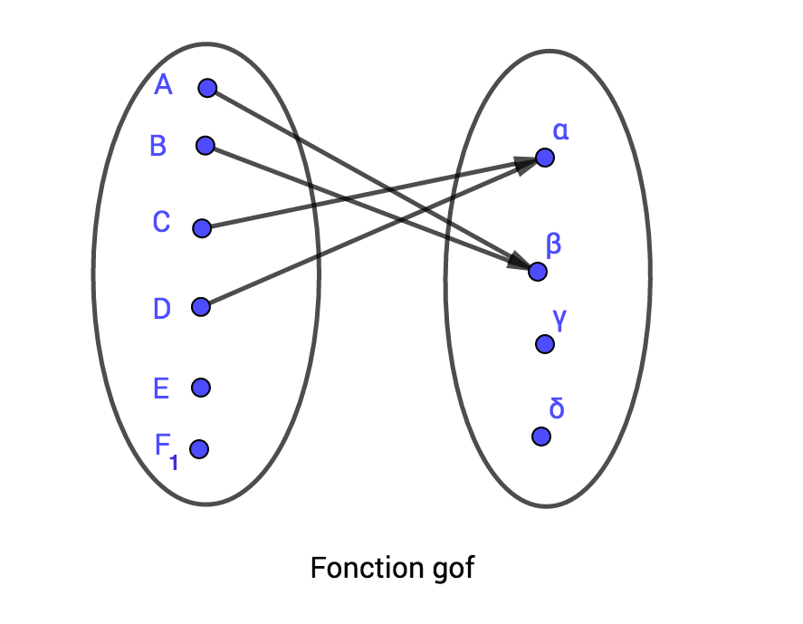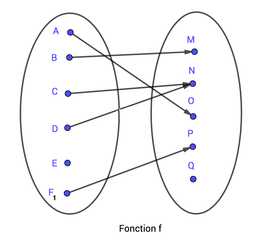 On appelle E l'ensemble de départ de f, F l'ensemble d'arrivée de f.
