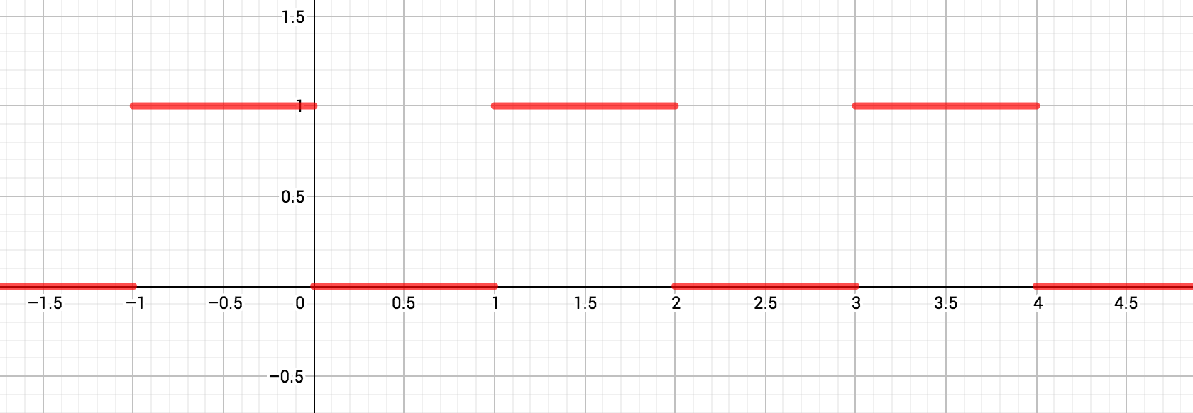 2. Les fonctions "créneau" que l'on trouve en physique, comme celle-ci, de période 1.