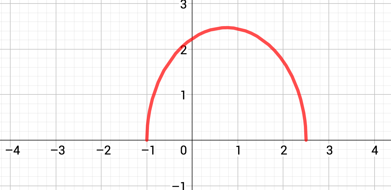 Les coordonnées (x,y) des points de la représentation graphique vérifient l'égalité y=4x 2, équivalente à y 2=4x 2 et y0. On reconnaît l'équation du demi-cercle de centre (0,0) de rayon 2, dans le demi plan y0. Voici la représentation graphique de g :