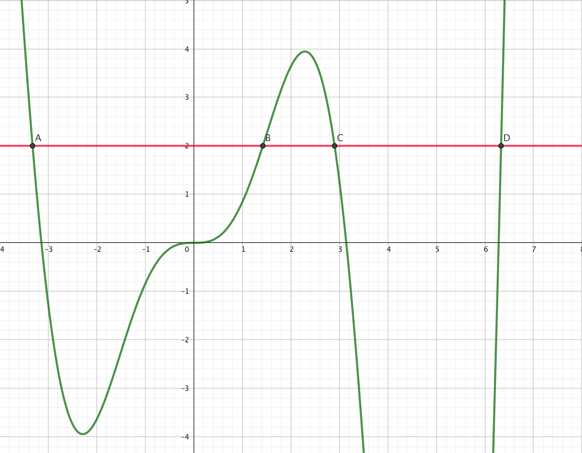 Exemple. La courbe bleue est la représentation de la fonction définie par f(x)=x 33x 2+2x, la courbe rouge est la représentation de la fonction définie par g(x)=x 33x 22x.