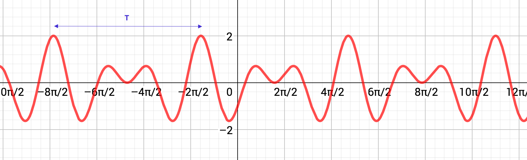 Remarque. Lorsqu'une fonction admet T pour période, elle admet aussi (vérifiez-le) 2T,3T... pour périodes. On convient en général de réserver le terme de période d'une fonction périodique au plus petit réel T positif et non nul vérifiant la définition.
