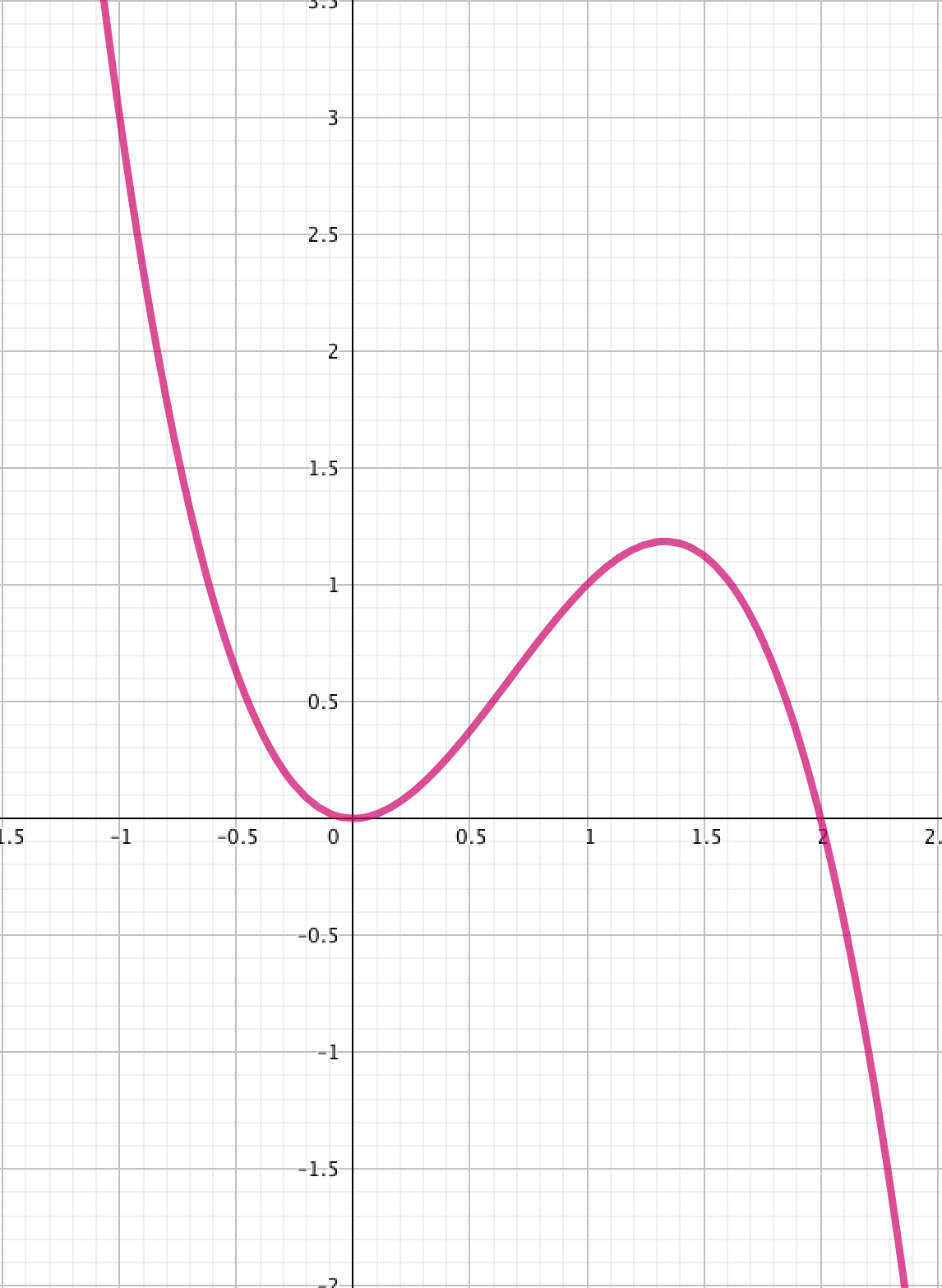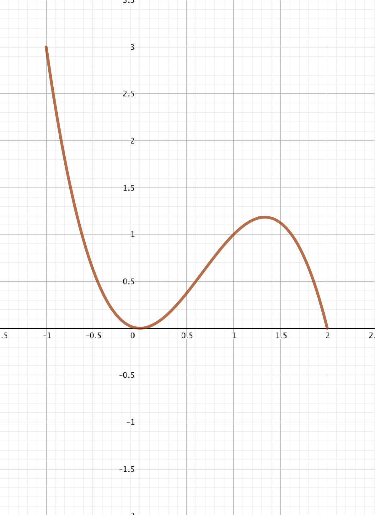 On a tracé ci-dessous les courbes représentatives de la fonction définie a priori sur par f(x)=x 2(2x) (en violet), puis celles de ses restrictions f˜ 1 et f˜ 2, respectivement aux intervalles [ 0,1] (en bleu), puis [ 1,2] (en marron).